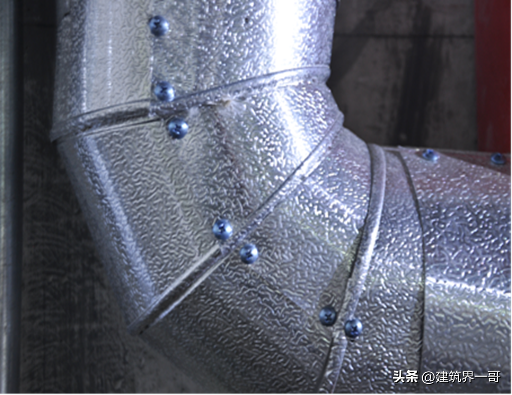 外包镀锌钢板接口的搭接应顺水,并有凸筋加强,搭接尺寸为20~25mm。