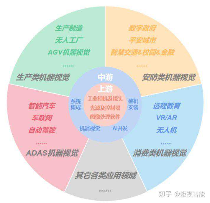 而下游,依托不同领域的需求,可以建立起各类机器视觉应用场景。从广为人知的自动驾驶(ADAS机器视觉),到智慧城市(安防类机器视觉),再到无人工厂(生产类/工业类机器视觉)。机器视觉技术给人类带来的绝不仅仅是技术上的升级,更将是生活方式的巨大变革。