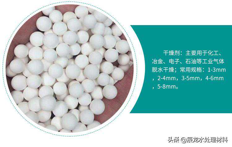 4.空压机中用在吸干机方面,主要吸附空压机在工作过程中产生的水汽,保证空压机管道的干燥和通常;做为干燥剂常用型号为3-5mm,4-6mm,6-8mm,8-10mm,10-12mm;