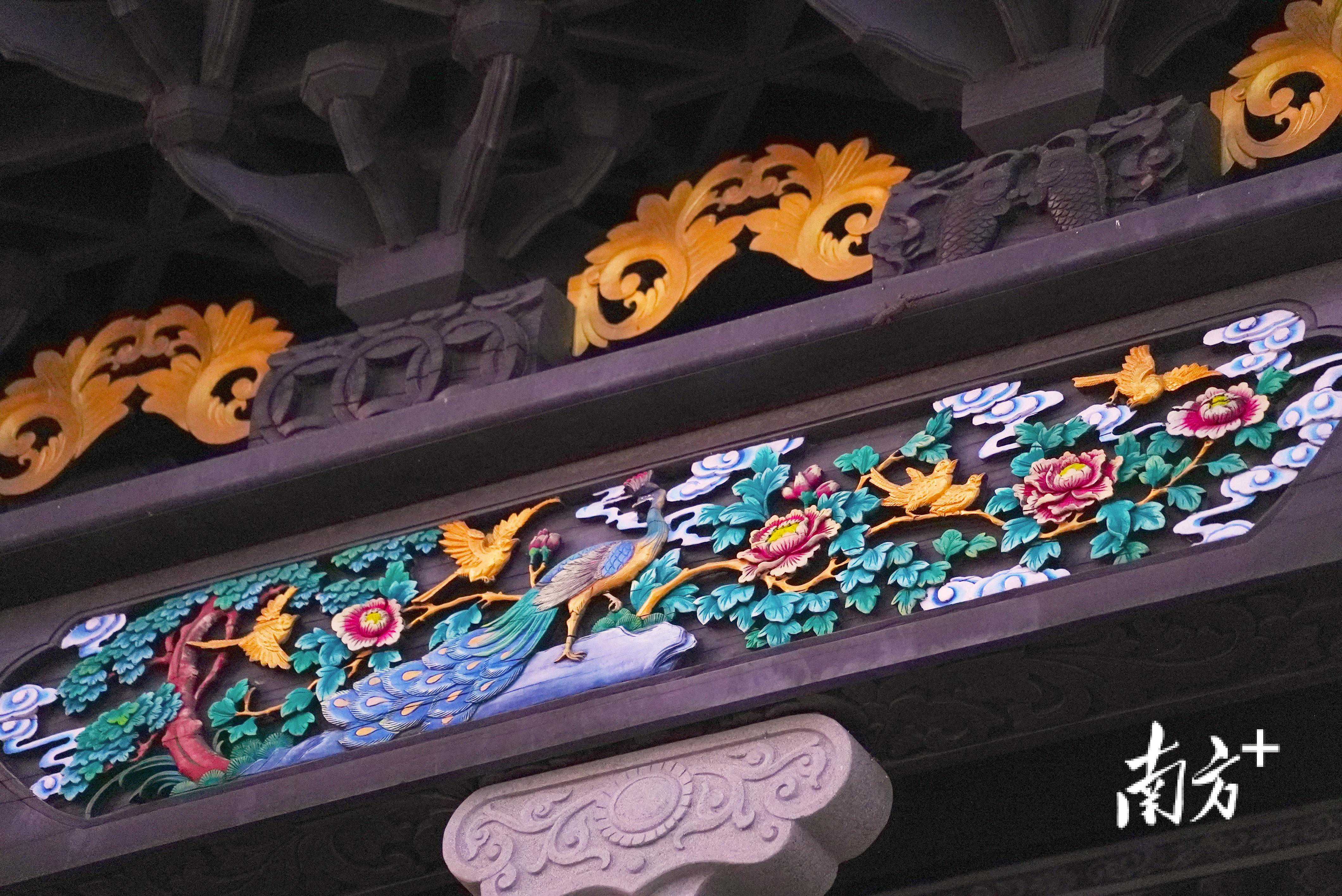 “古代建筑木雕属于实用木雕类,雕刻工艺有镂空、线刻、薄雕、浮雕、高浮雕等,不同地区的雕刻工艺也有所差别。”林进和介绍,广府派木雕刻工细腻、形象生动、立体感强,广泛应用于园林寺庙、亭台楼阁、厅堂建筑装饰,具有极强的艺术性、实用性和装饰性。