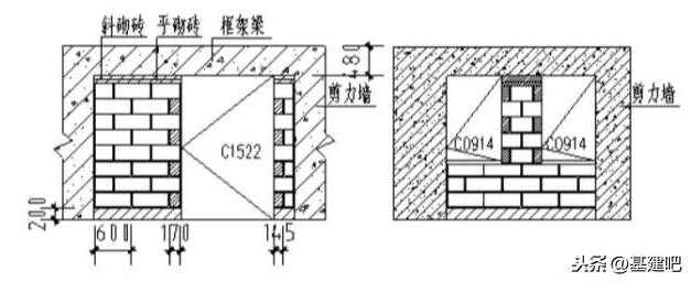 1)如采用后塞口时,使用水泥砖按洞口高度在2m以内每侧砌三道,洞口高度大于2m时砌四道,砂浆要饱满密实。按照设计要求窗侧需设置构造柱的按照设计要求施工。