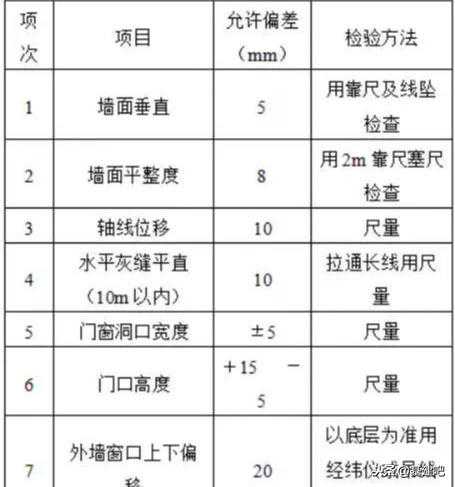 表面平整度:5mm墙体垂直度:4mm轴线位移:10mm
