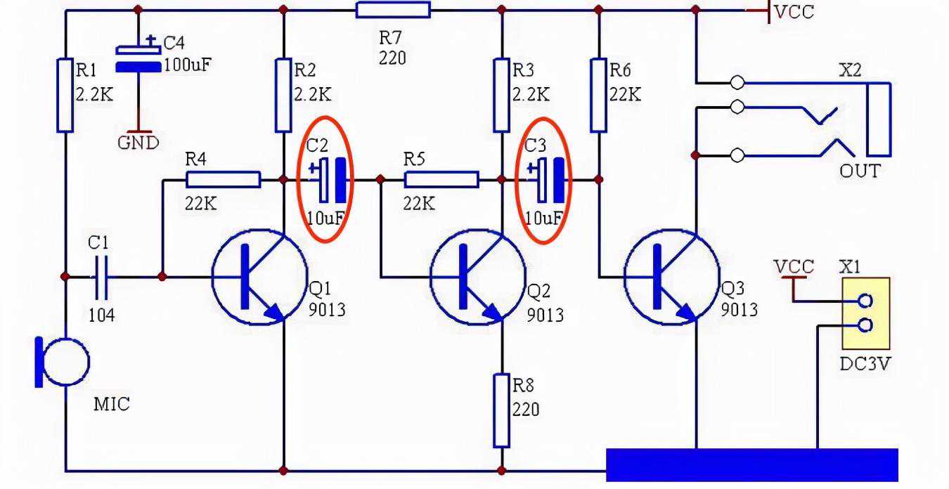 如下图:C2,C3用于传递交流信号,隔离直流信号,此处要求电解电容的漏电流足够小,容量足够大。