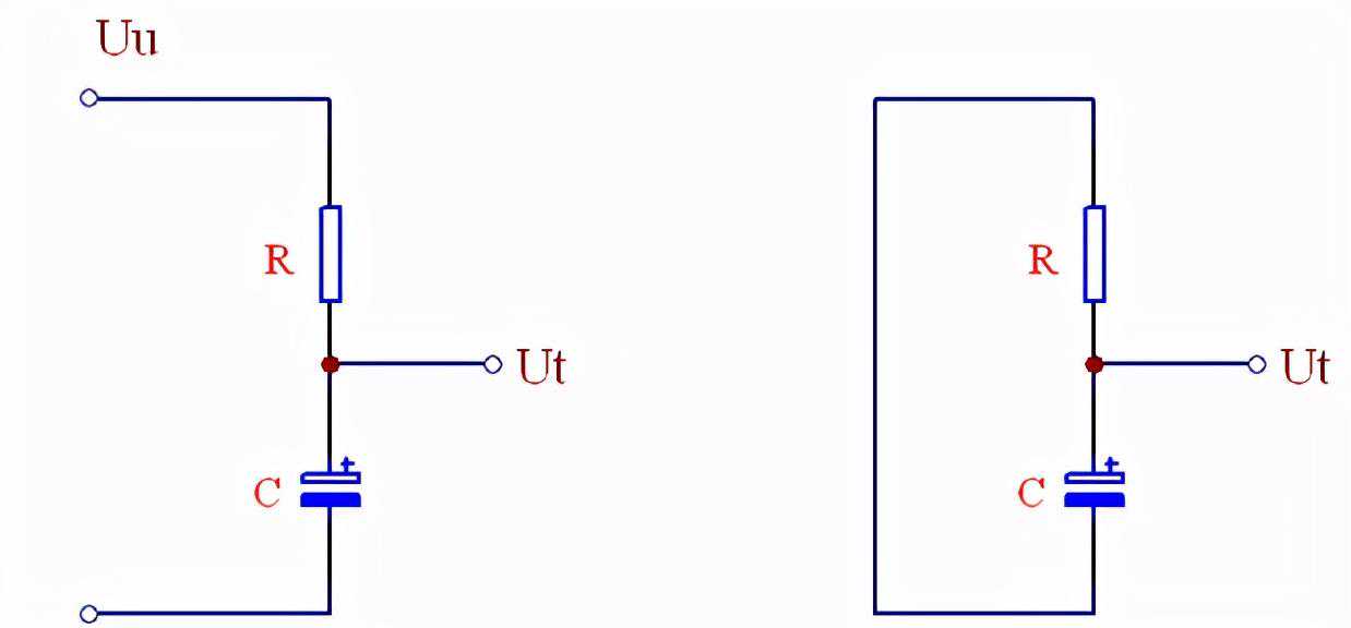 放电后的任意时刻,如右部分,电容上的电压Ut与充电时间t有如下关系(充电电源电压为Uu):