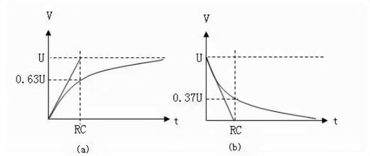 RC的乘积称之为时间常数,可见时间常数越大,充放电就越慢。