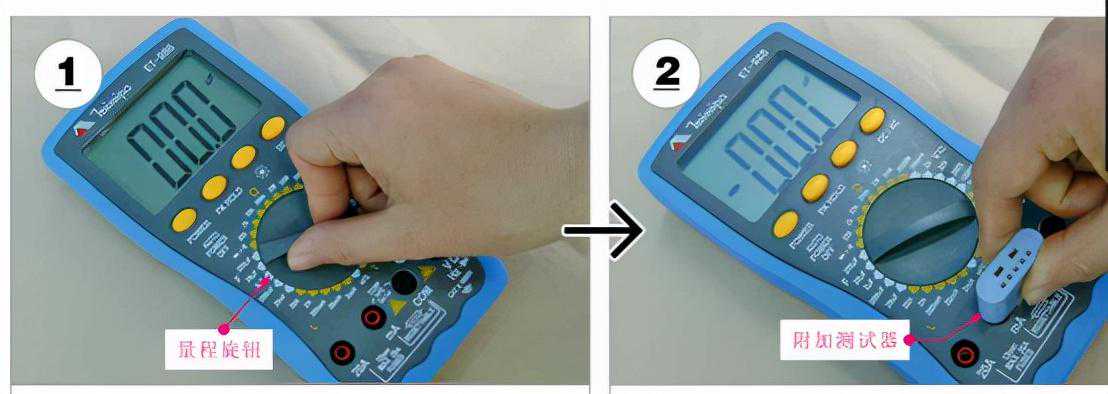 2)将附加测试器插入数字万用表相应的插孔中;