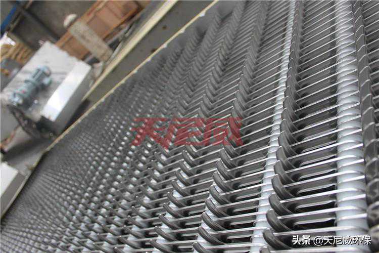 回转式机械格栅式由ABS工程塑料、尼龙或不锈钢制成的特殊形耙齿,按一定的次序装配在耙齿轴上,形成封闭式耙齿链,其下部分安装在进水渠中,在传动系统的带动下,整个耙齿链便自下而上运动,并携带固体杂物从液中分离出来,液体则从耙齿的栅隙中流过,整个过程连续进行。