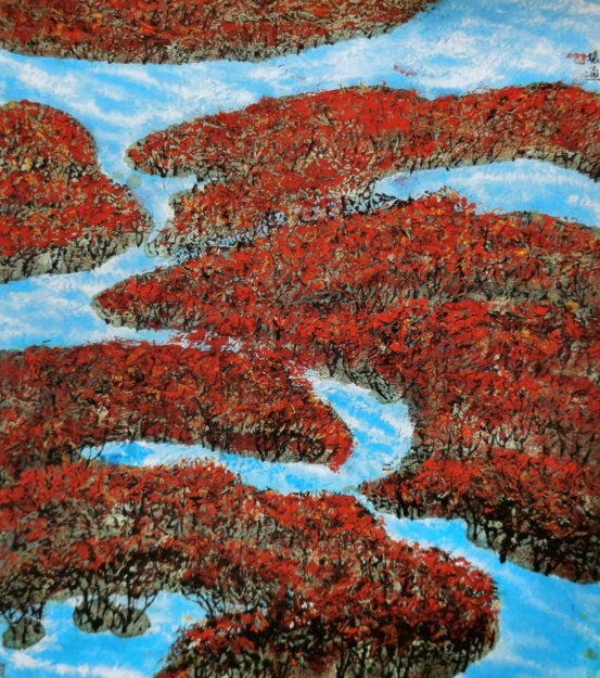 《哨所红叶》90×90cm