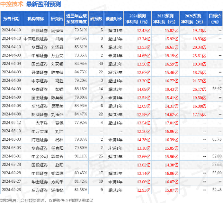 最新盈利预测明细如下: