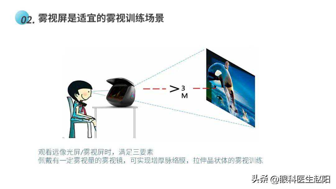 而观看远像雾视屏时,同时满足上述三要素,所以我们可以佩戴有一定雾视量的欠矫眼镜,来实现增厚脉络膜、拉伸晶状体的雾视训练。依据文献,60分钟的持续雾视场景,可以增厚脉络膜20μm。