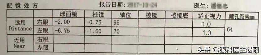 雾视镜度数:只给低雾,镜方为+1.00D(离焦雾视镜给+0.75D,下面不再列出离焦雾视镜的度数,按比单光镜少25度雾视量计算即可)