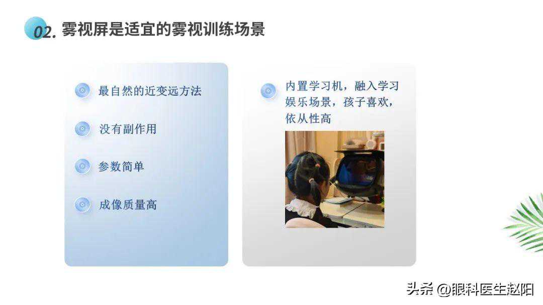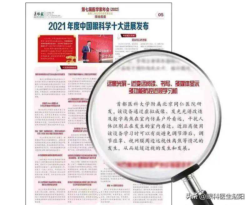 新鲜的是远像雾视屏,这个黑科技可以把雾视训练融入到孩子的日常用眼当中,孩子一边刷着题、看着纪录片、玩着游戏,一边就给眼睛的近视防控加了分。所以,它才能入选2021年眼科学十大新进展。