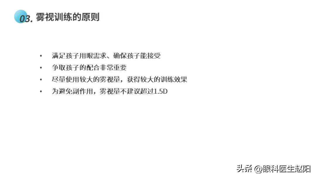 雾视训练的原则,是在满足孩子用眼需求、孩子能接受的情况下(争取孩子的配合非常重要),尽量使用较大的雾视量(但不超过150度)。