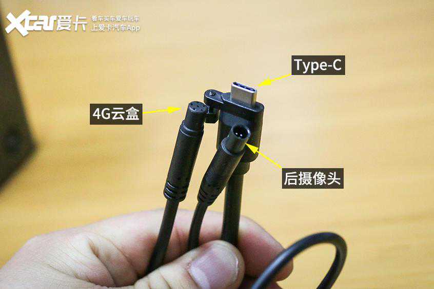 电源线的另一头为Type-c接口,后摄像头信号和4G云盒信号都经过Type-c接口传输。车主可以根据自身需求对4G云盒进行选购,连接4G云盒之后,能够实现远程监控车辆和进行行车数据云端储存,或者进行远程拍照。当车辆不幸发生碰撞时,能够第一时间通过APP来通知车主。