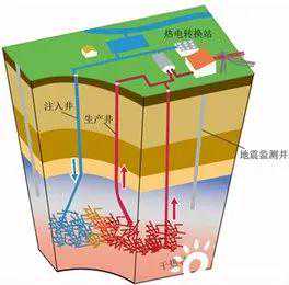 地热资源按照热流体传输、开发模式等可分为地热资源可分为浅层地热能、水热型地热能和干热岩型地热能(增强型地热系统)三种类型(周总瑛等,2015)。这其中干热岩具有能量大、分布广、利用率极高、安全性好、无污染、不需尾水回灌、拥有优质资源的大陆边缘海盆、建发电站效能高用地省、热能稳定持续、发电可控性强、减灾减排效果好等特点,是地热能开发的重要目标。目前比较认同的干热岩定义是一种不含水或蒸气、埋深3-10km、温度为150-650℃的致密热岩体(李德威等,2015)。目前许多地区发现的干热岩,大多数为花岗岩。这样比较:科拉超深钻孔12km深,最高地温也才200℃,而干热岩钻井4km可能就达到了300摄氏度左右。这就是干热岩的温度!