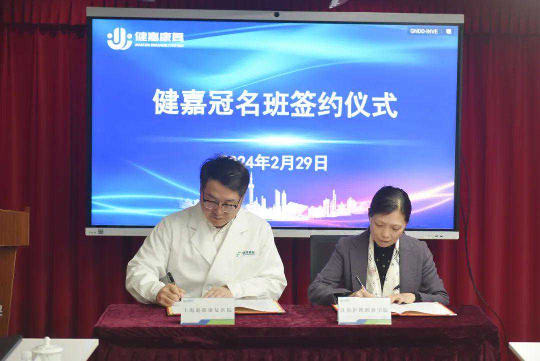为积极落实国家校企合作、深化产教融合精神,进一步加强与学校的深度合作,探索校企合作新思路,2月29日,江苏护理职业学院领导一行来到健嘉医疗旗下——上海慈源康复医院进行健嘉冠名班的授牌仪式。