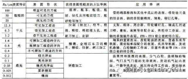 九、最后来个宝典粗糙度对照表:
