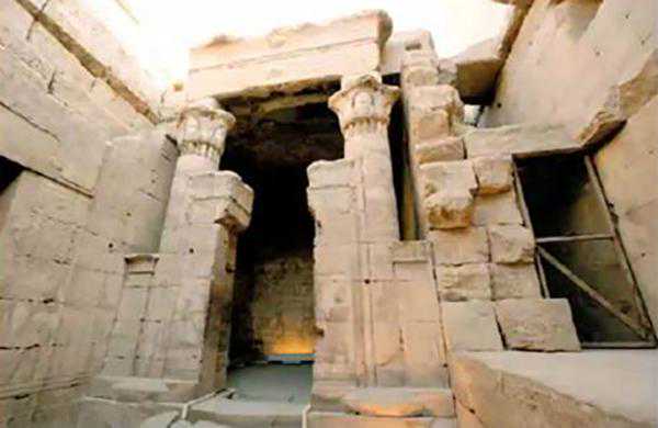 第五座神庙为托勒密时期的丹德拉(Dera)神庙,规模不大,公元前52年开始建造,公元前32年完成装饰。这座神庙供奉的也是牛神哈托尔。在神庙高处刻有一行希腊文。从年代上看,这是“埃及艳后”在位期间下令修建的。丹德拉神庙更特别,与“奥赛里斯之墓”一样提供很多线索。和之前展示的神庙一样,在圣殿前的供奉大厅出现了《亡灵书》。但是丹德拉最特别之处是顶层的建筑都在。它虽然小,但是保存完整。上面的6间小祠堂和“神亭”都保存完好。祠堂里的浮雕详细描绘了一个非常重要的宗教仪式——荷阿克节(KhoiakFestival)。丹德拉因“圆形黄道十二宫浮雕”而闻名,这应当是历史上第一次出现黄道十二宫的图像。当年,当拿破仑远征队的军官第一次发现它时,就被其震撼,发出这样的感慨:“我们不是在神庙里,而是在科学与艺术的殿堂。”他们把整个浮雕撬下来运到了卢浮宫。丹德拉神庙还有一个长形黄道带浮雕,覆盖整个天花板。丹德拉的浮雕上很多图像都有其象征含义,其中羚羊、荷鲁斯、“吐水的蛇”等都在《亡灵书》中出现过。因为保存完整,丹德拉提供了最好的仪式环境。其中举行的荷阿克节就是奥赛里斯的复活节。奥赛里斯是以一位被谋害的国王,他的妻子伊西斯把他的尸体碎片找到,之后他复活并成了冥神。他被弟弟赛特谋害。奥赛里斯的儿子荷鲁斯为父报仇,夺回了王位。在丹德拉顶层祠堂的东三祠堂,有一个天窗,天窗四面都是奥赛里斯的形象。在春分那一天,阳光会正好照射在奥赛里斯身上,这都是经过精心设计的。埃及人擅长用建筑表达时间,正如在阿布辛贝神庙,每年春分时第一缕阳光直射照到神庙最深处4位神的脸上。