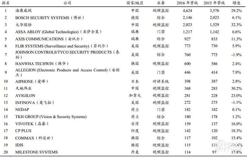 ▲全球安防企业前20名(营收单位:亿美元)