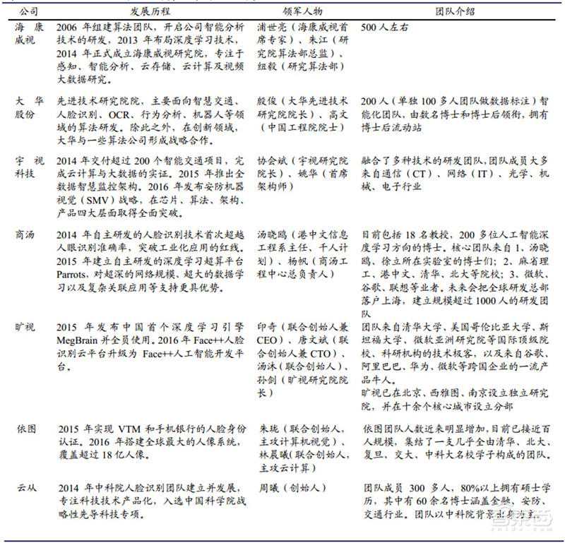 ▲安防龙头与AI创业公司算法布局比较简表