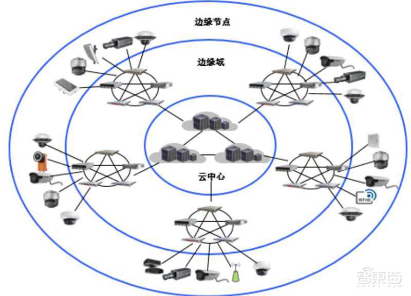 边缘计算指靠近物体或数据源的一侧,搭载网络、计算、存储、应用等能力为一体的开放平台,就近提供服务,具有即时性强、反应迅速、传输成本低等优点。AI赋能边缘,前端智能化对于安防架构有重大益处。根据IDC预计,到2020年,物联网感知设备数量将达到500亿部,约50%的计算量在边缘完成。前端智能化带来较大益处,提升感知精度,提升感测速度,减小传输过程的噪音影响,降低传输成本,降低存储成本。诸如海康的AICloud,通过边缘节点、边缘域进行实时感知,通过云中心进行集中式认知。