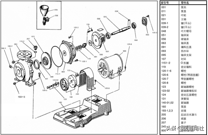 离心泵的主要零部件: