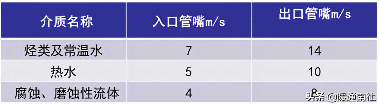 泵内介质流速不宜超过以下限制:
