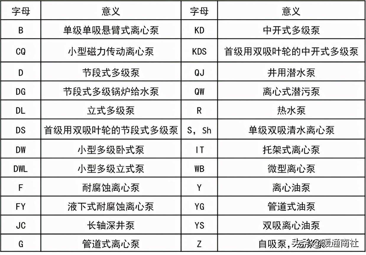 泵型号除包含上述字母外,还用一些数字和附加的字母来表示该泵的参数和功能。不同类型泵的表示方法有所不同,较常见的表示方法有以下几种: