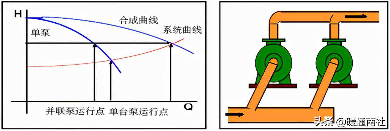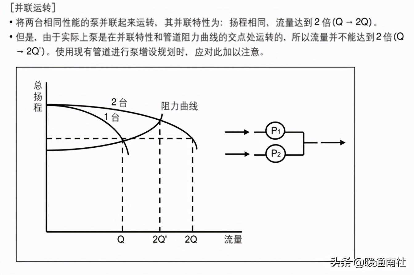 注意:这两台泵必须要满足可以运行在相同的流量点;只有满足这一条件,这两台泵的扬程才能叠加。