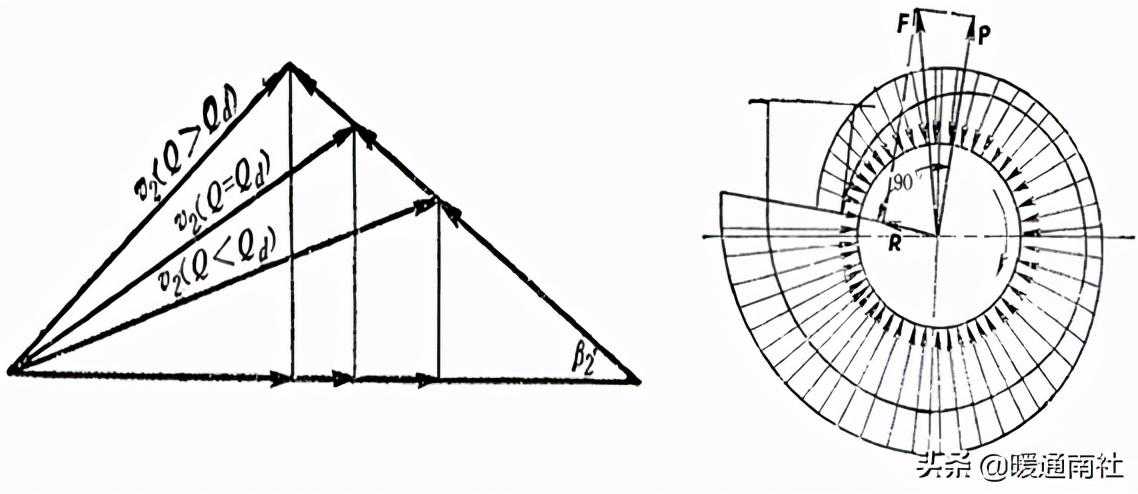 当用前弯叶片,即β290‘时,Q增大则Ht增加,表面上,以用前弯叶片为宜,实际中,考虑到各种损失,多用后弯叶片。