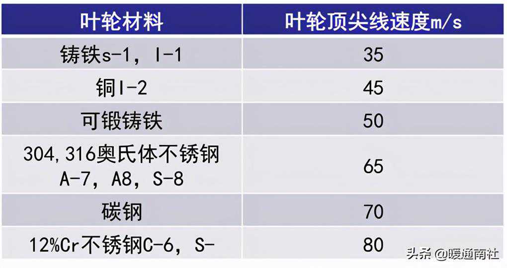 泵叶轮顶尖流速不宜超过以下限制: