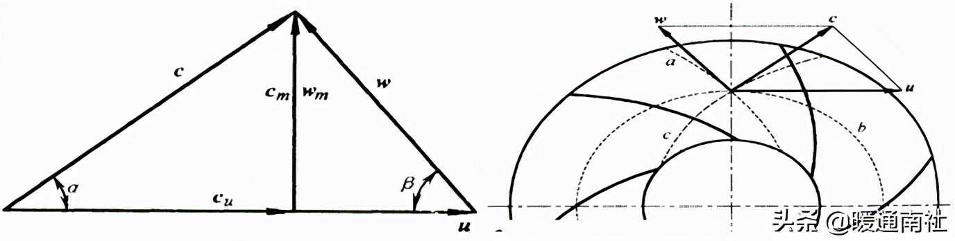 U:圆周速度(相切于圆周方向,Cu周向分速度,Cm径向分速度,U=πnD/60)