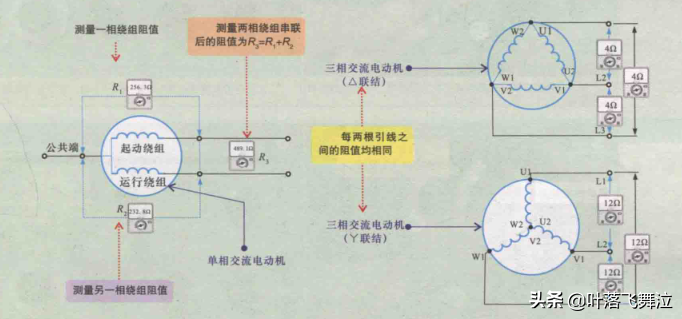公共端、主、副绕阻两两测量阻值,其中两个数字之和等于第三个阻值为正常即(R1=R2+R3)。若任意一阻值为无穷大,则说明有断路情况。