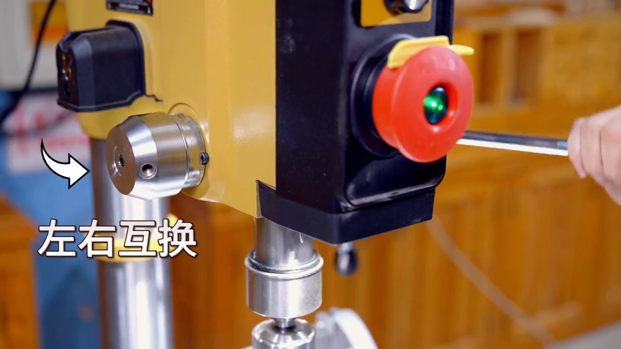 ·右侧的这个部件有两个功能:一是深度限位,二是下压把手。下压把手又可以实现左右互换。左侧上方是它的高低速转换把手,使用它必须要在停机状态下。