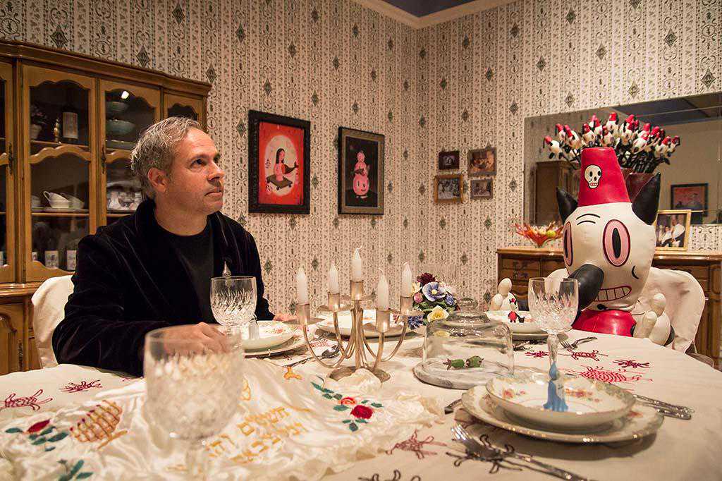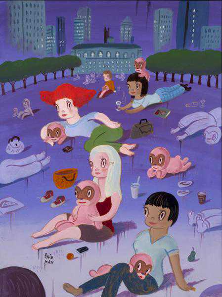 后来他又陆续获得了更多杂志的邀请。有了一点钱之后,天生不知天高地厚的他又开始画油画、搞动画、做玩偶⋯⋯什么都敢干。在纯艺术界的批评家还没来得及对他拙劣的刚入门的油画技法表示嗤之以鼻时,他的小幅油画已经悄然走俏市场,因为他的插画已经为他培养了一大批忠实的粉丝。广大的市场、节节攀升的价格,让纽约的一线画廊不得不重视这个身份不明的家伙。