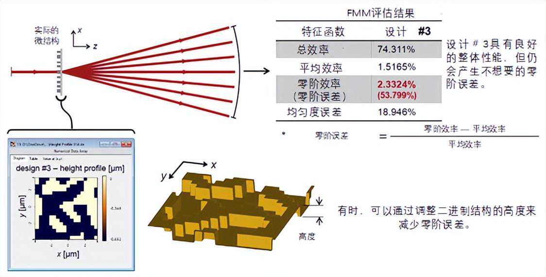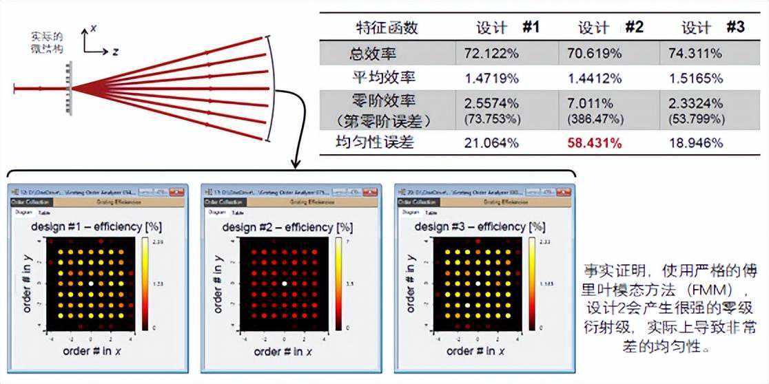 使用严格的FMM进行评估以检查非近轴情况下的实际性能。