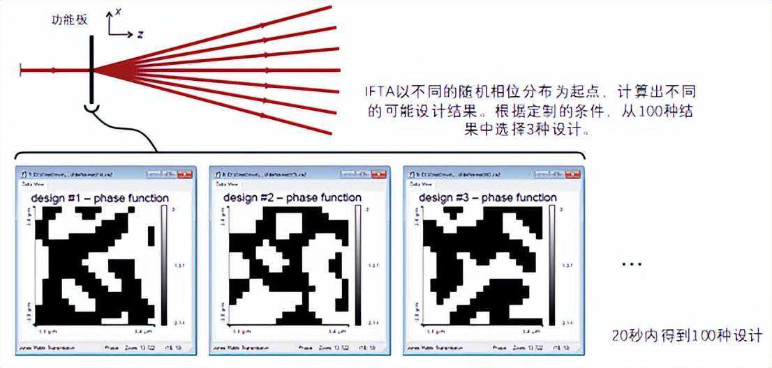 使用迭代傅立叶变换算法(IFTA)进行纯相位传输设计。