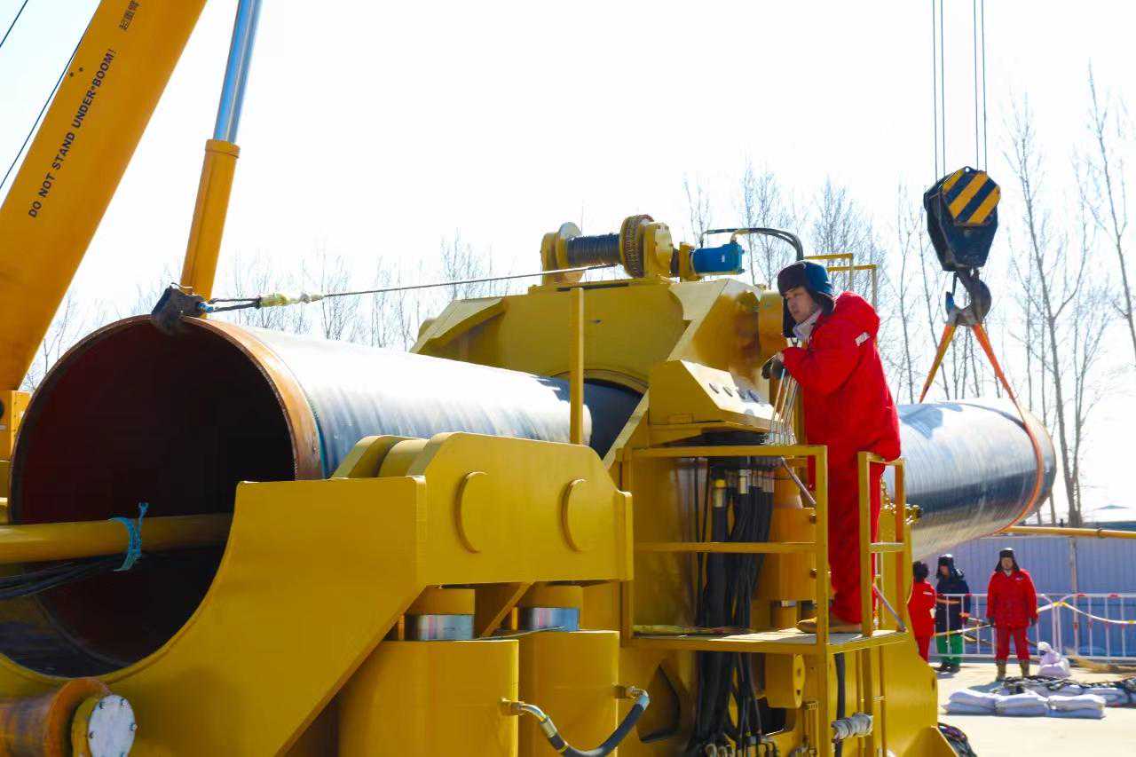 在距离施工现场100公里以外的米沙子镇,弯管冷煨工作正在同步展开。“吊装、牵引、举升、煨制,每一步都需要达到极其精准,十分考验操作技术。一根管煨制下来,前前后后得需要一个小时的时间。为了确保弯管及时供应,我们正在加紧赶工,每天能煨出六七根左右的弯管,尽最大努力为前线施工做好保障。”机组长胡丹说道。