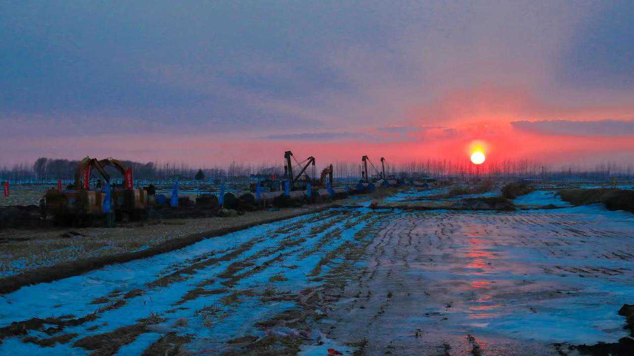 飞鸟披霞归,落日复西斜。夕阳如火的余晖落射在宽广无垠的冰雪大地上,冰与火的交融汇聚成辽河油建人砥砺奋进、勇毅前行、积极投身国家重点工程建设的决心。渐沉的金色夕阳下,机器在轰鸣着,人影在攒动着,辽河油建的旗帜在迎风飘扬着……