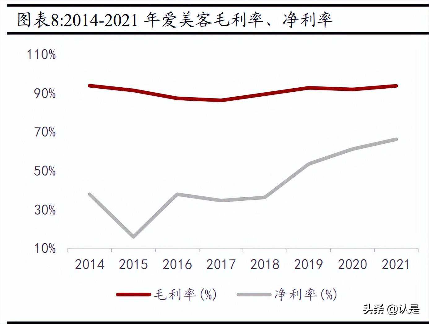 从国内上市公司来看,上游原料、药品生产企业在轻医美、注射类医美火爆的背景下,在近几年获得较高盈利。2017-2021年期间,爱美客、华熙生物、昊海生科三家上游厂商毛利率均在75%以上,其中爱美客专注于耗材生产赢得更高附加价值红利,丰富的差异化产品矩阵契合求美者多元化需求,嗨体等多款出圈爆品持续放量增长,公司定价能力强,收获高达90%以上的毛利率。