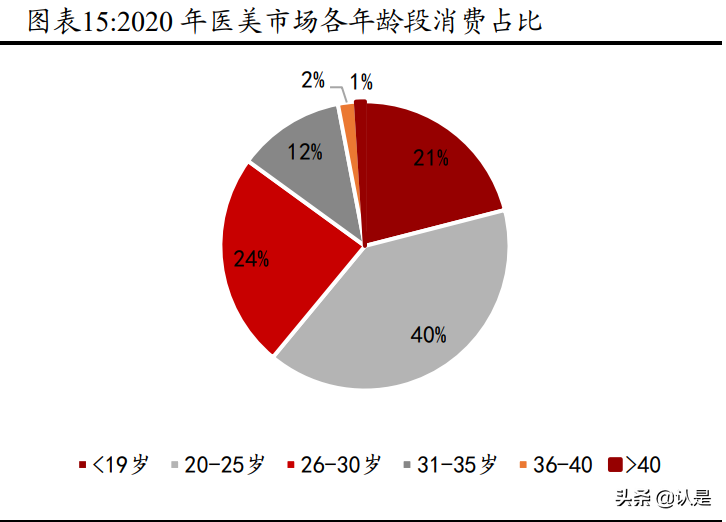 医美行业快速发展,主力消费者年轻化。医疗美容是指运用手术、药物、医疗器械以及其他具有创伤性或者侵入性的医学科技方法对人的容貌和人体各部位形态进行的修复与再塑。随着近年来中国经济的循序发展,国民经济水平不断提升,大众在物质满足的基础上产生强烈的审美需求,叠加社会舆论对于“颜值红利”的宣传,消费者为美付费的意愿不断增强,国内医疗美容市场在近年呈现出快速发展的趋势。根据弗若斯特沙利文数据,2020年中国医美市场规模增加至1549亿元,2016-2020年年复合增速18.9%,2020年由于疫情的影响同比增速稍有放缓,预计疫情后增速回暖,2030年市场规模将达到6535亿元,2020-2030年的年复合增速为15.5%。与此同时,医疗美容市场用户规模也不断攀升,2016-2020年复合增长率达到52.64%,主力消费人群偏向年轻化发展,以2020年为例,20-25岁年龄段占比最高,26-30岁次之,20-35岁的人群占比达76%,90后、95后已经成为医美行业消费主力军,为医美市场快速发展注入新鲜血液。