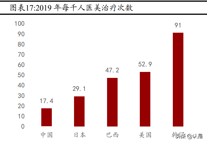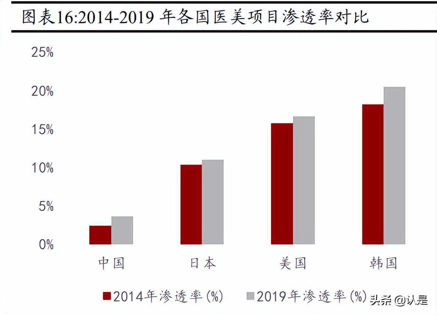 对比成熟市场渗透率低,未来发展空间广阔。与医美市场成熟的发达国家比较,2014年-2019年我国医美渗透率从2.4%增至3.6%,但与韩国2019年20.5%的渗透率相比至少存在4倍的发展空间,此外2019年我国医美诊疗次数为17.4次/千人,不及韩国的五分之一,随着90后消费主力军消费能力提升、70后对医美接受度提高,我国医美市场将进入更加长期稳定的增长模式。