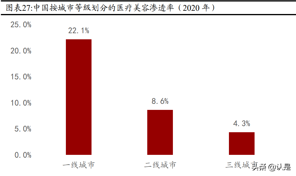 二三线城市渗透率低,下沉市场空间广阔。据弗若斯特沙利文数据显示,一线城市医美渗透率高达22.1%,在二线城市则只有8.6%,三线城市甚至只有4.3%。随着国产透明质酸品牌不断上市,将凭借其价廉质优的特点得到二三城市市场青睐。