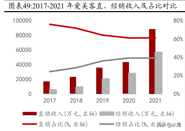 同业对比直销比重较大,直面销售终端环节扩销量。公司秉持“直销为主、经销为辅”的销售模式,以直销稳定把握优质客户资源,以买断性经销模式拓展渠道覆盖下游分散医美机构。与同类公司相比,爱美客直销收入占比约为60%-70%,对比华熙、昊海30%-40%的占比显现出明显的直销特色。公司以非公立医疗机构为服务主体,因此针对非公立医疗机构容易产生的信息不对称等问题公司借助直销模式深入参与到机构面向消费者的产品推广和终端销售环节,根据产品的特性和定位与机构共同制定营销策略、完善终端客户管理、打造良好的品牌形象与服务质量,及时掌握市场需求,同时帮助机构稳定客源、降低获客成本,使合作双方达成共赢。