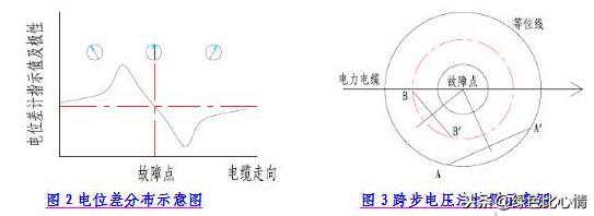 跨步电压法是目前应用最为广泛、有效的高精度定位方法,用于对埋地电缆故障点的判断。检测时使用的设备主要为为1台高压系列波脉冲发生器和1套带有探针的电位差计或毫伏表。
