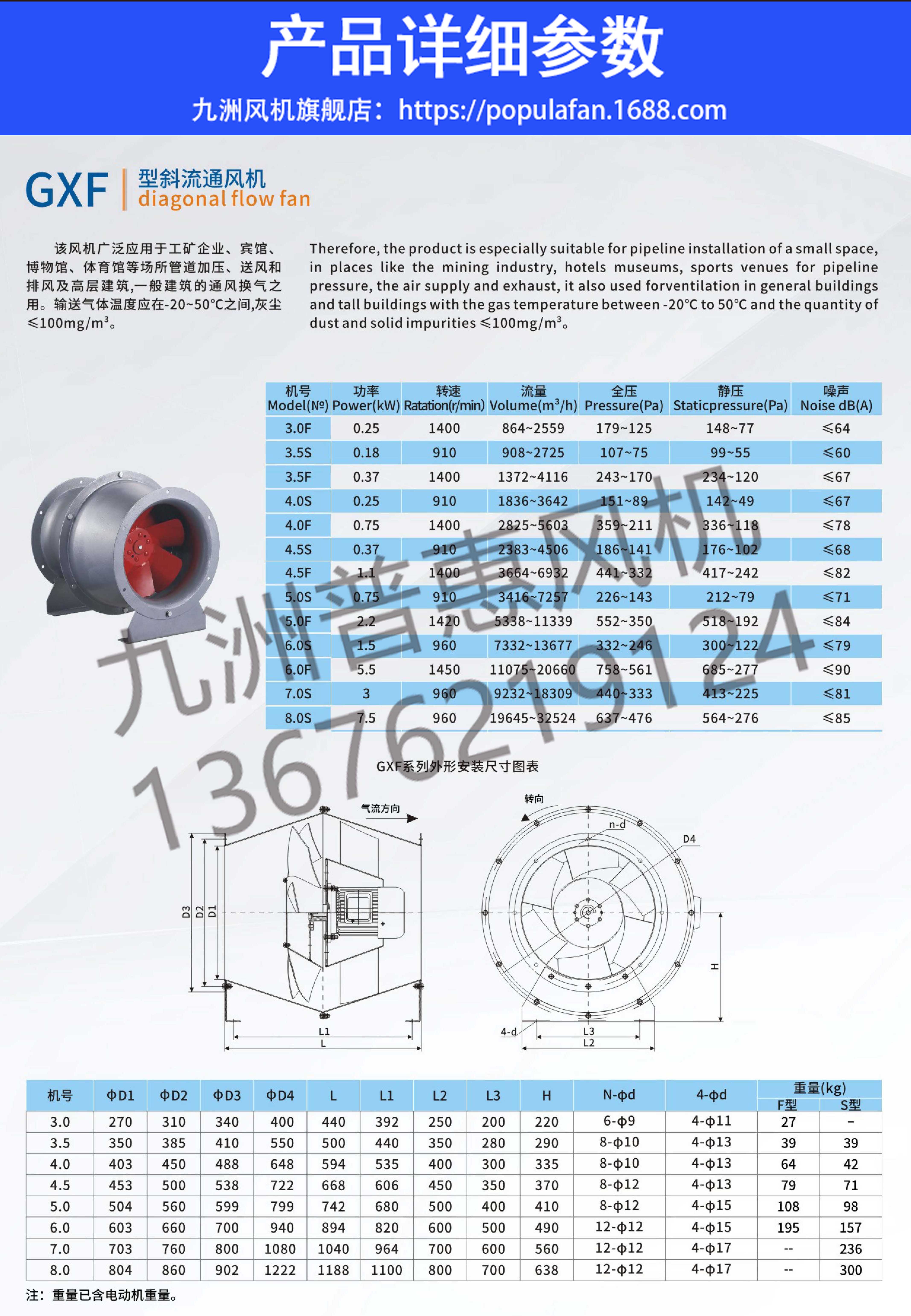 1.高效节能:GXF型斜流通风机采用先进的空气动力学设计,具有较高的通风效率,能够有效降低能耗。