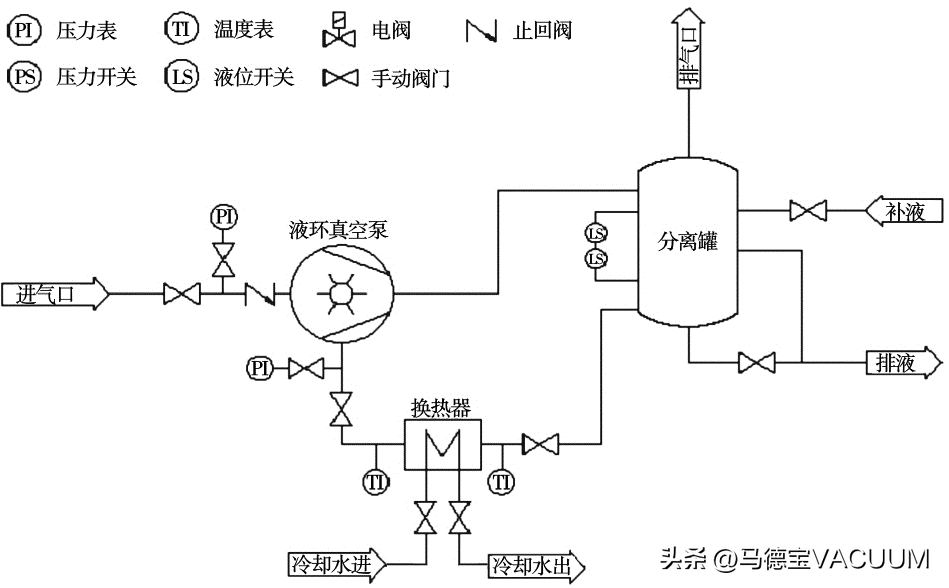 常用的工作液是水,亦可以用与工艺介质相适应的其他液体,如低粘度的油、乙二醇以及其他工艺溶剂如甲苯、二甲苯、甲醇、乙醇、丙醇、丁醇和乙苯等,这些密封液可以采用如图2所示的全循环系统,以避免对环境的污染。