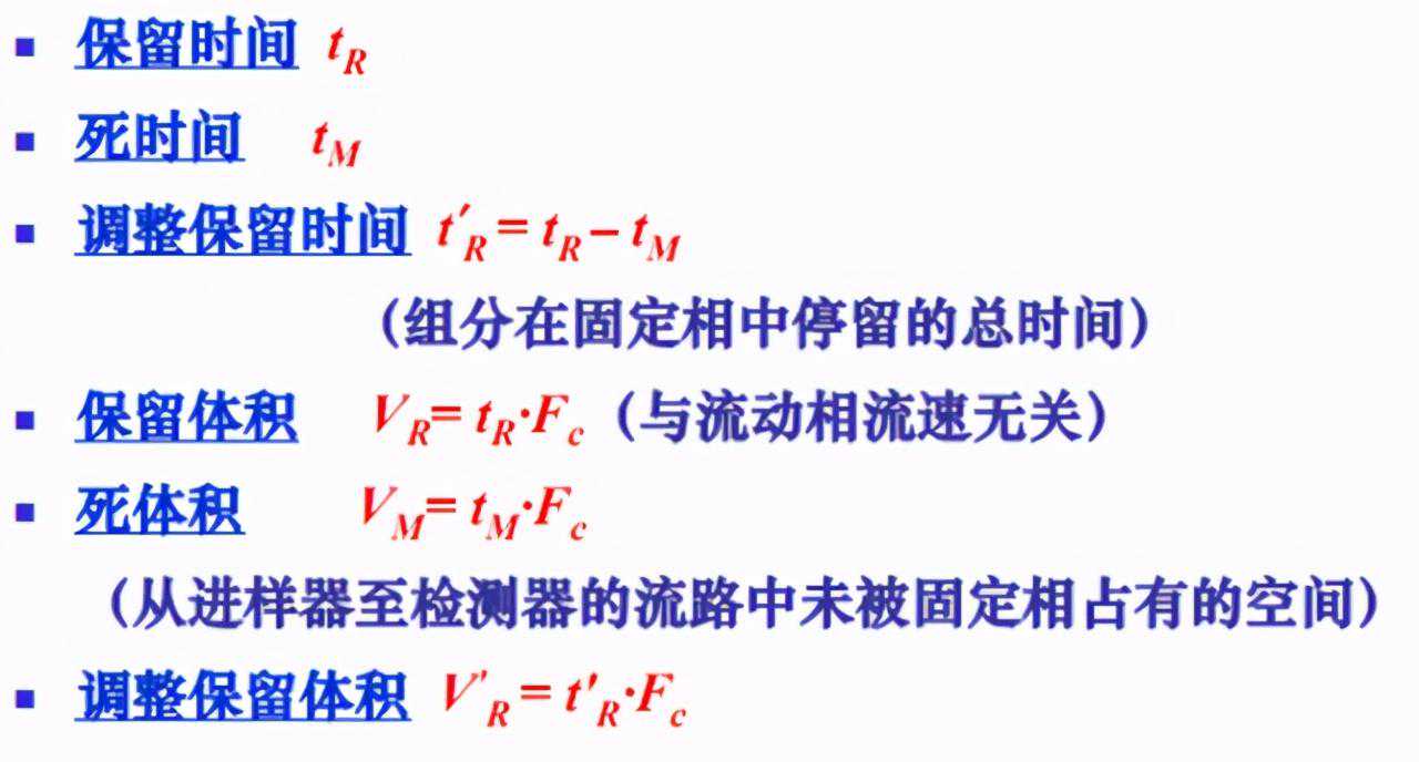 是用来描述样品组分在色谱柱中保留程度的参数,并作为色谱定性的指标。其表示方法有: