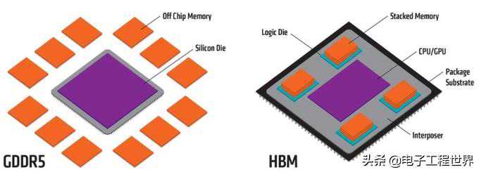 HBM(Highbandwidthmemory)是一款新型的CPU/GPU内存芯片(即“RAM”),就像摩天大厦中的楼层一样可以垂直堆叠。基于这种设计,信息交换的时间将会缩短。这些堆叠的芯片通过称为“中介层(Interposer)”的超快速互联方式连接至CPU或GPU。将HBM的堆栈插入到中介层中,放置于CPU或GPU旁边,然后将组装后的模块连接至电路板。