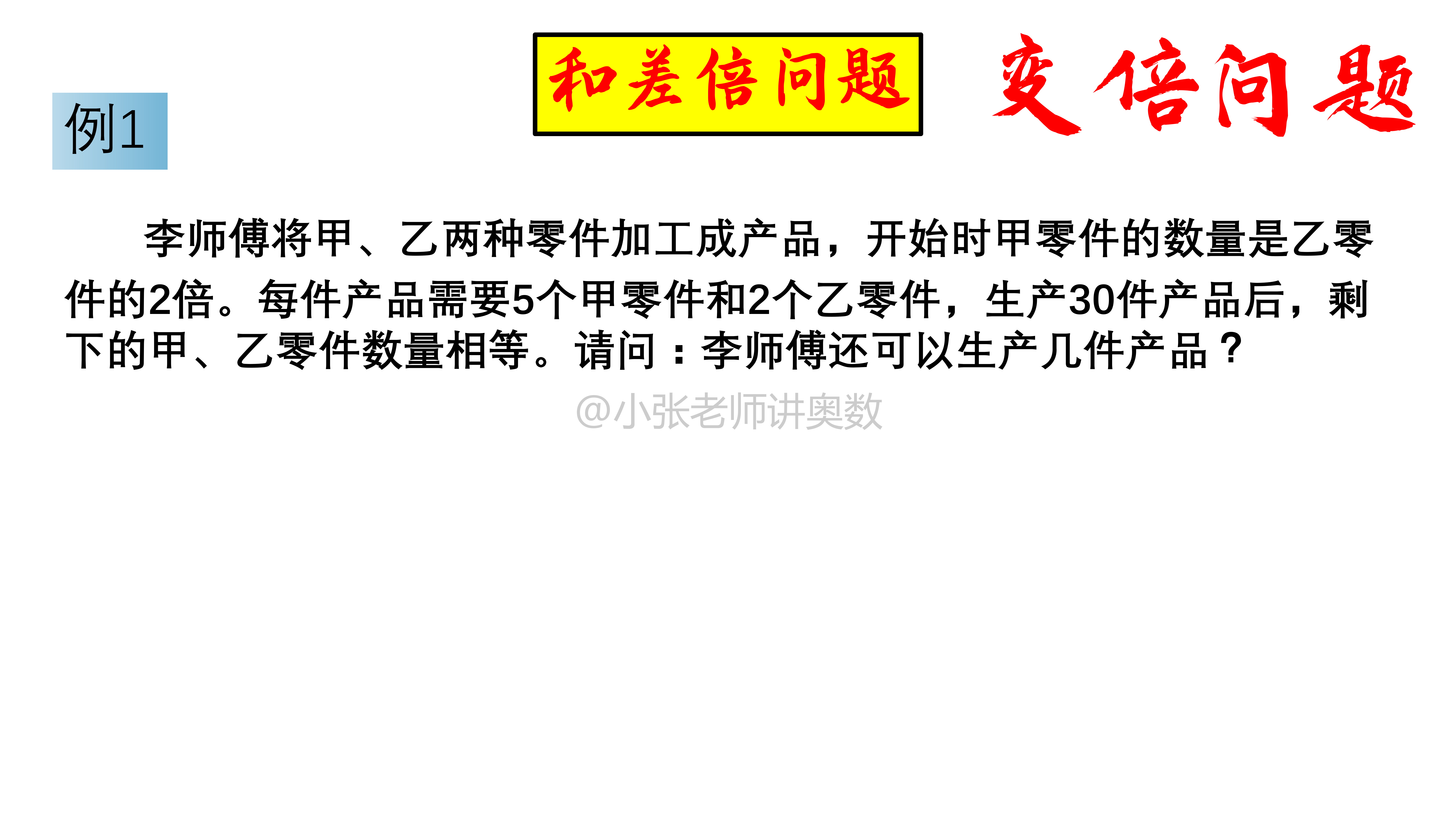 2.如果题目中出现了多个倍数的话,那我们来找一个不变量,然后通过不变量来设定一个统一的份数,这样我们就可以解决问题啦。